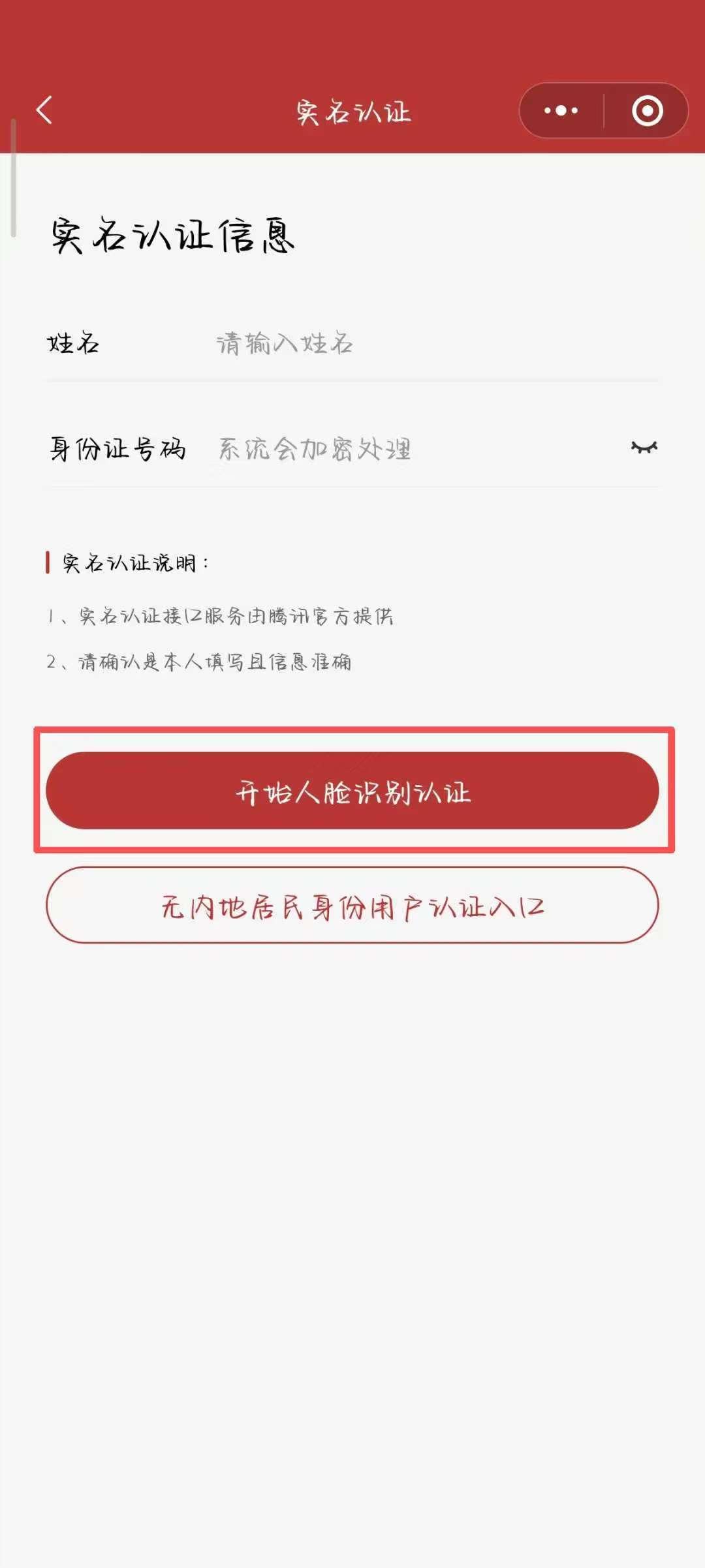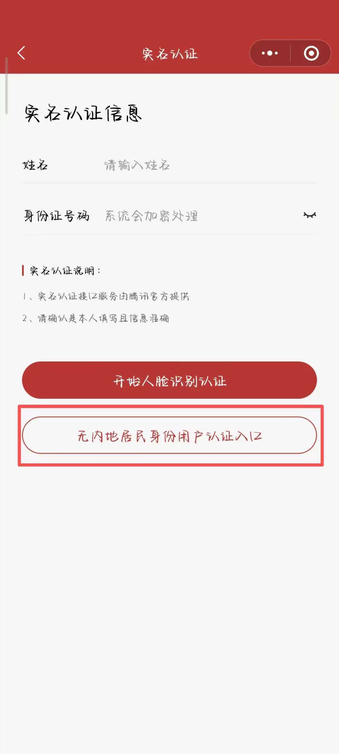 来自港澳台或海外的校友若无内地居民身份证,可以点击“无内地居民身份用户认证入口”,进入人工实名通道。