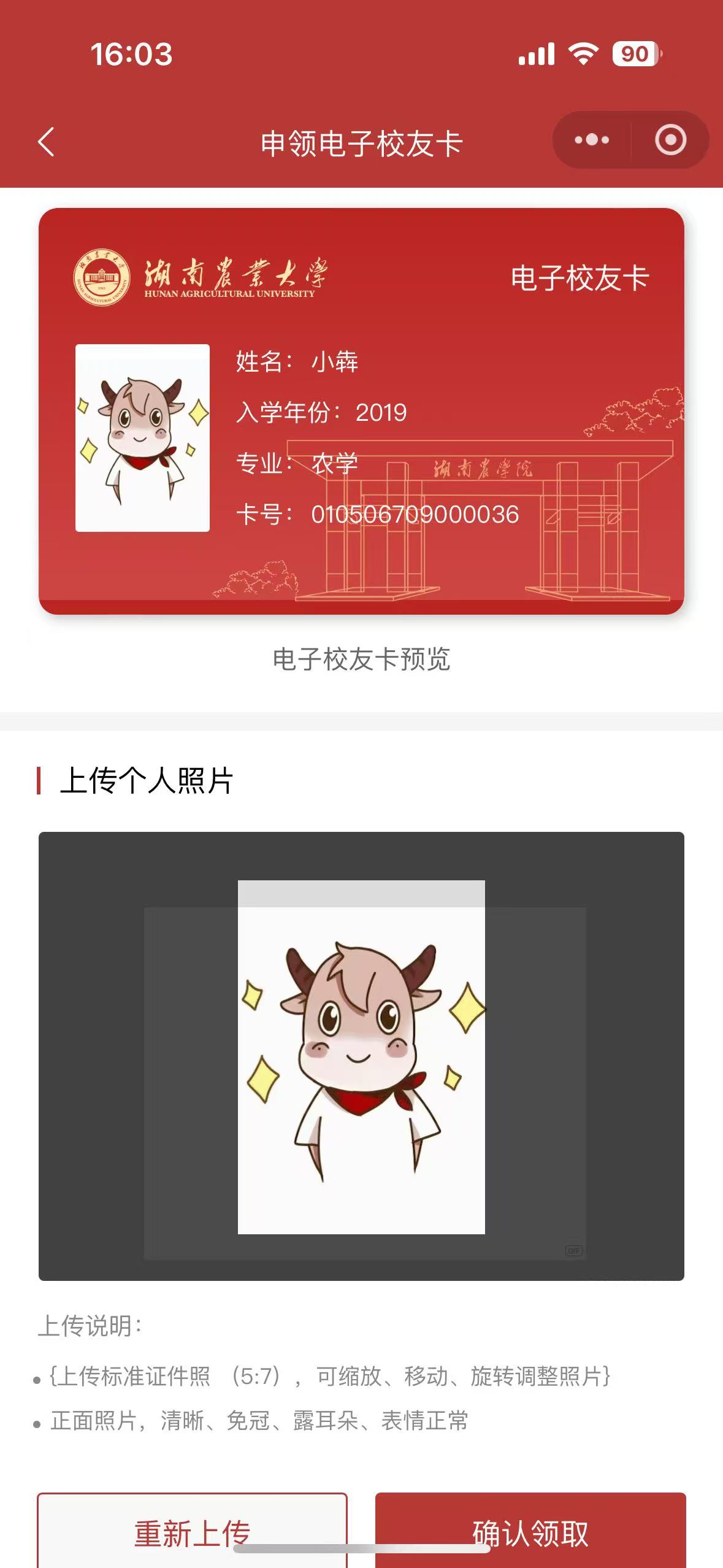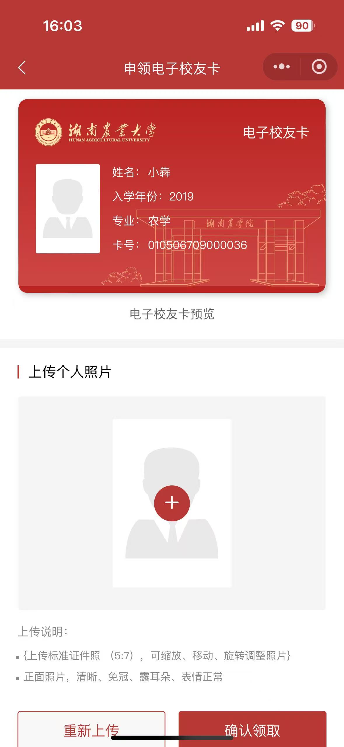 校友在完成身份认证流程后,即可在线申请并领取专属电子校友卡。